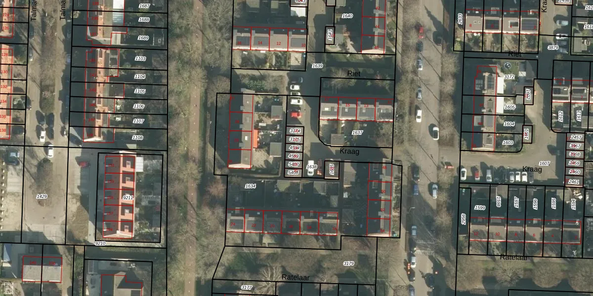 Het perceel waarop Kraag 24 staat heeft een oppervlakte van 17 m². Dit is een klein perceel. De perceeloppervlakte wordt geregistreerd door het Kadaster. Gedetailleerde informatie over de maten van dit perceel kunt u vinden in het rapport Kadastrale kaart met maatvoering van Kraag 24.