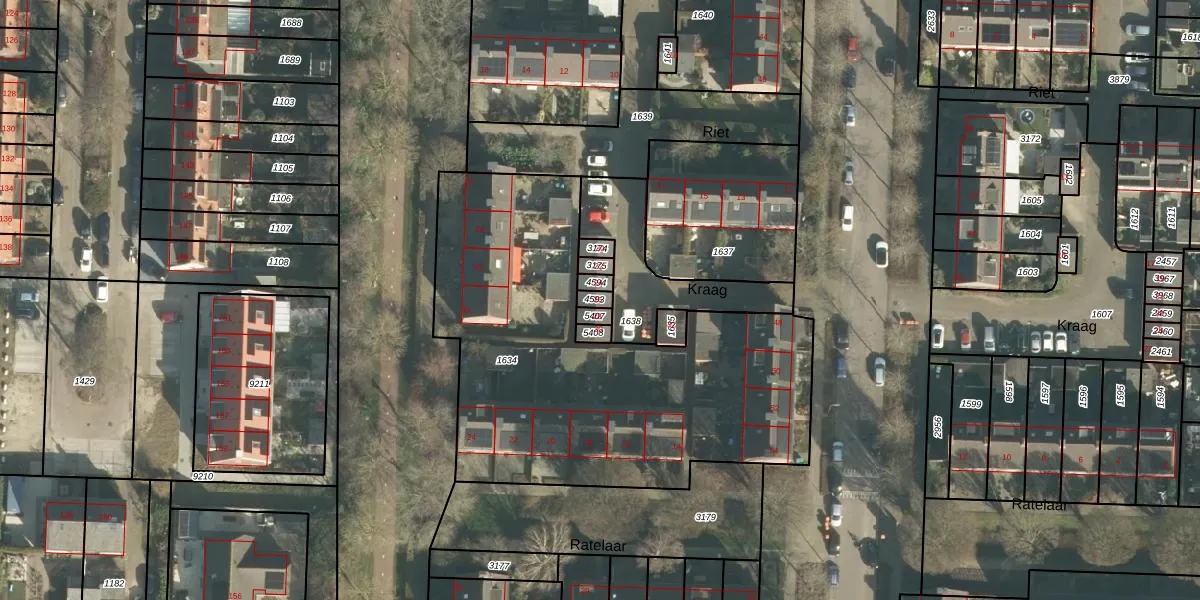 Het perceel waarop Kraag 26 staat heeft een oppervlakte van 17 m². Dit is een klein perceel. De perceeloppervlakte wordt geregistreerd door het Kadaster. Gedetailleerde informatie over de maten van dit perceel kunt u vinden in het rapport Kadastrale kaart met maatvoering van Kraag 26.