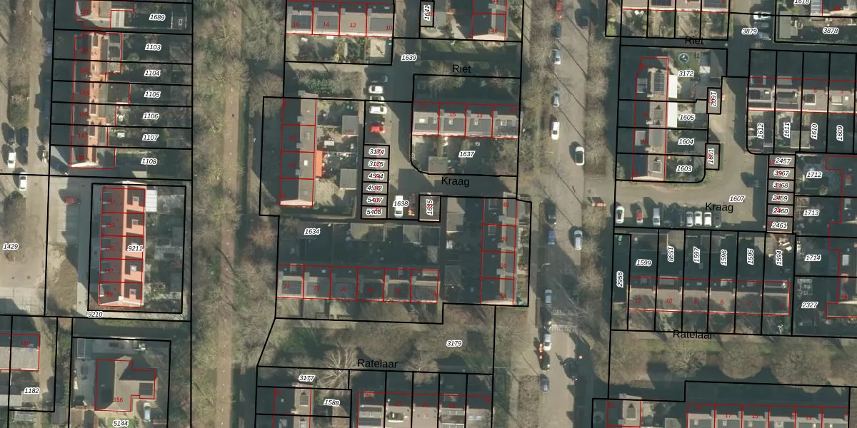 Het perceel waarop Kraag 32 staat heeft een oppervlakte van 30 m². Dit is een klein perceel. De perceeloppervlakte wordt geregistreerd door het Kadaster. Gedetailleerde informatie over de maten van dit perceel kunt u vinden in het rapport Kadastrale kaart met maatvoering van Kraag 32.