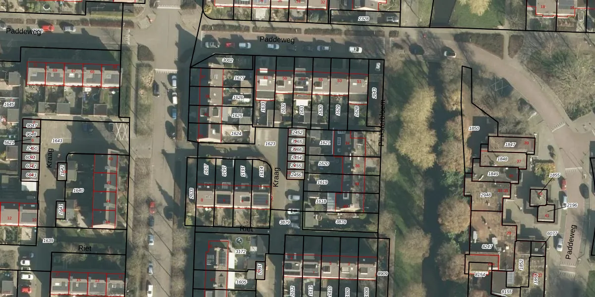 Gebruik de zoekbalk of klik op een perceel voor informatie over de adressen binnen dit perceel.