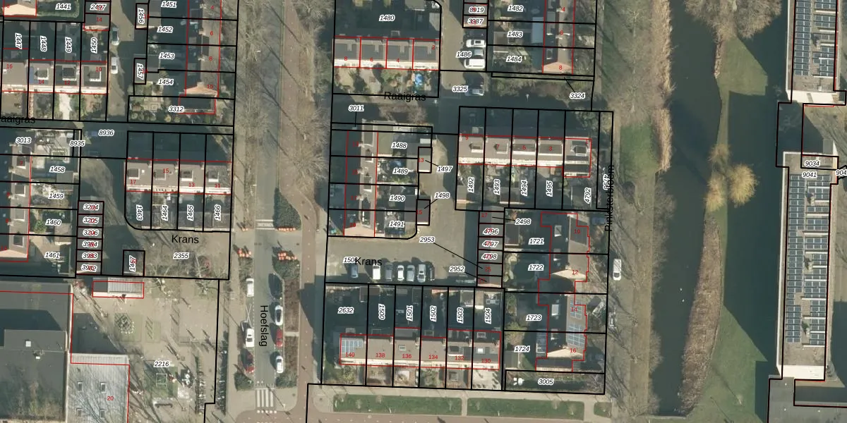 Gebruik de zoekbalk of klik op een perceel voor informatie over de adressen binnen dit perceel.