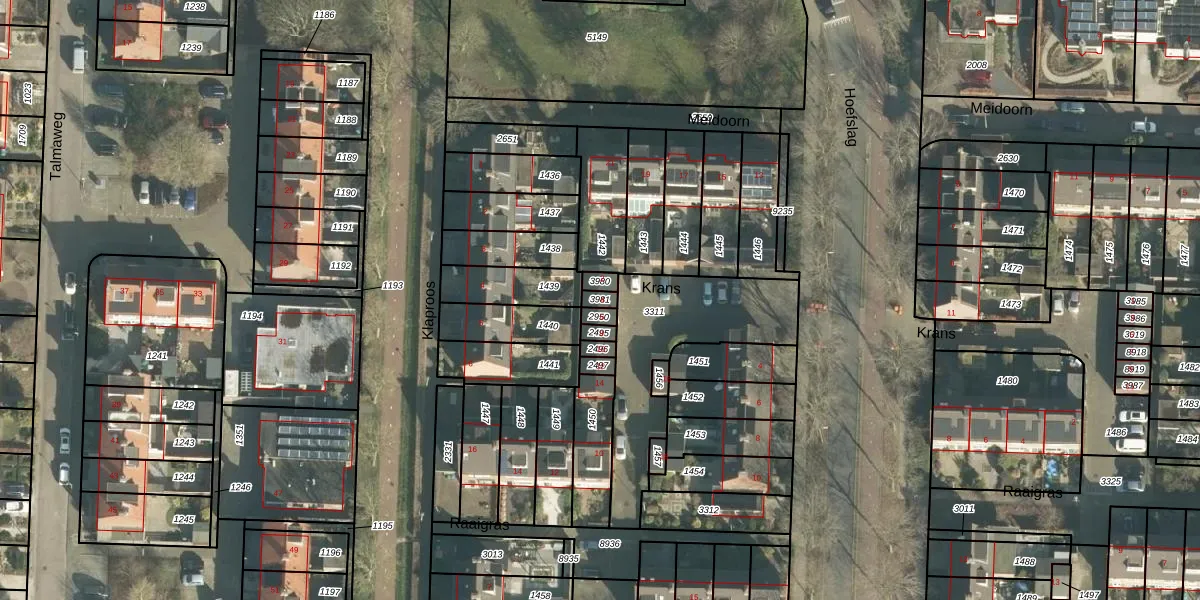 Gebruik de zoekbalk of klik op een perceel voor informatie over de adressen binnen dit perceel.