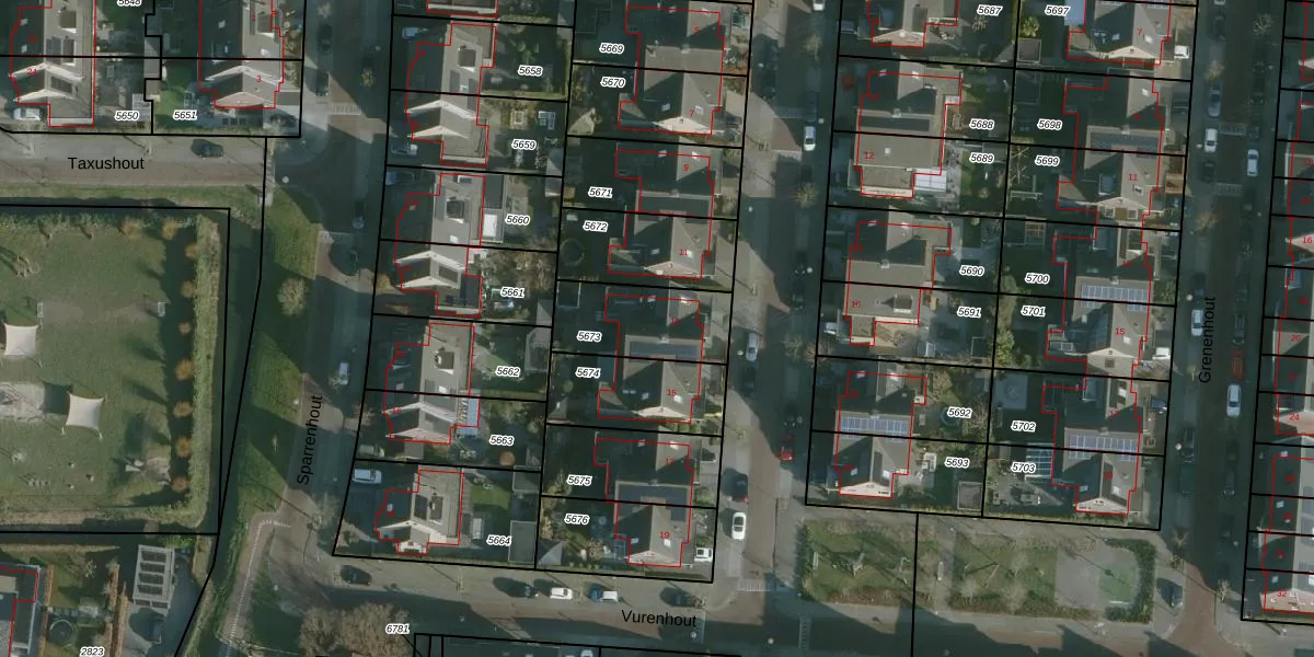 Het perceel waarop Larikshout 13 staat heeft een oppervlakte van 291 m². Dit is een middelgroot perceel. De perceeloppervlakte wordt geregistreerd door het Kadaster. Gedetailleerde informatie over de maten van dit perceel kunt u vinden in het rapport Kadastrale kaart met maatvoering van Larikshout 13.