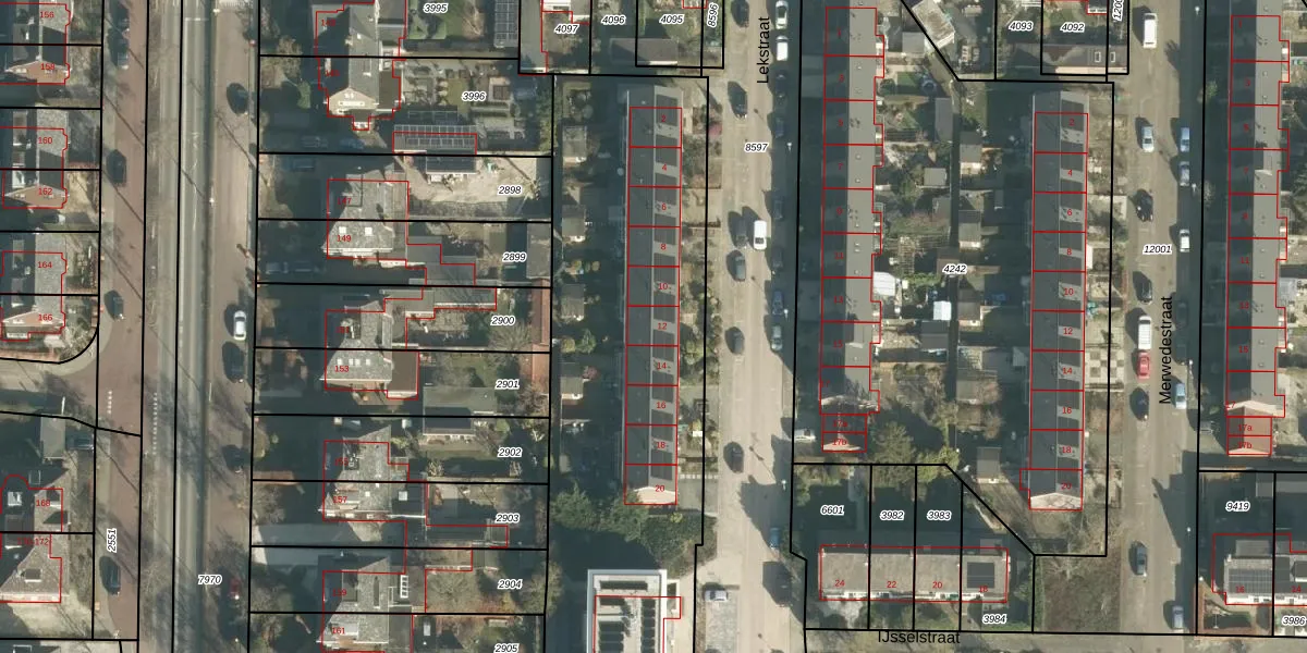 Het perceel waarop Lekstraat 12 staat heeft een oppervlakte van 4838 m². Dit is een zeer groot perceel. De perceeloppervlakte wordt geregistreerd door het Kadaster. Gedetailleerde informatie over de maten van dit perceel kunt u vinden in het rapport Kadastrale kaart met maatvoering van Lekstraat 12.