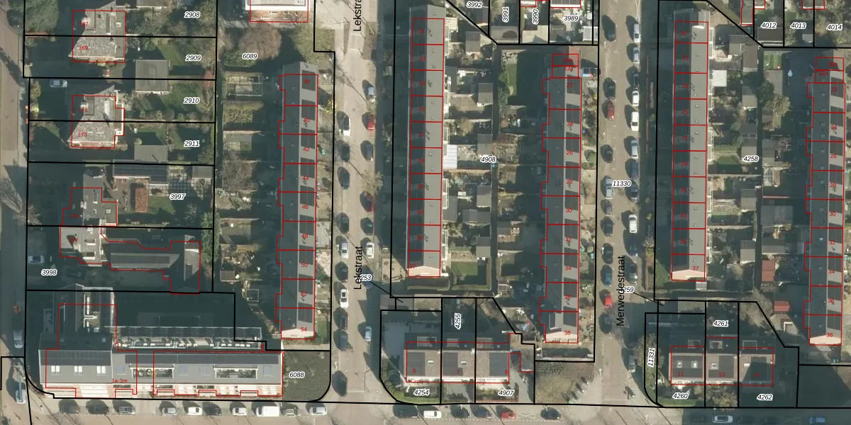Het perceel waarop Lekstraat 33 staat heeft een oppervlakte van 3350 m². Dit is een zeer groot perceel. De perceeloppervlakte wordt geregistreerd door het Kadaster. Gedetailleerde informatie over de maten van dit perceel kunt u vinden in het rapport Kadastrale kaart met maatvoering van Lekstraat 33.