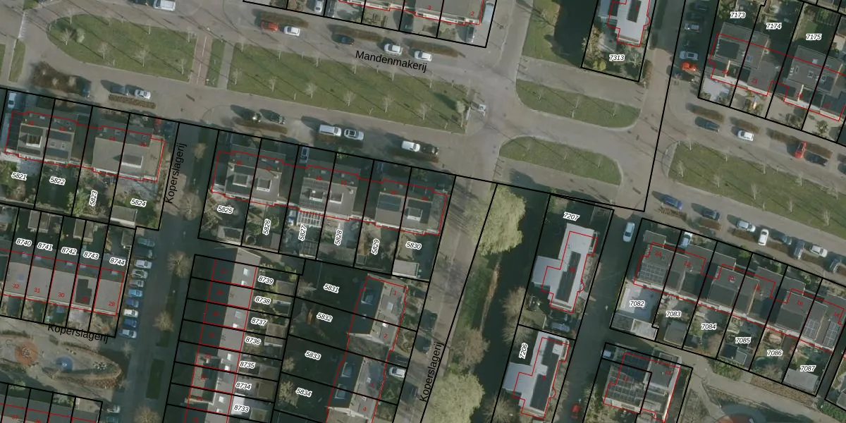 Het perceel waarop Mandenmakerij 21 staat heeft een oppervlakte van 260 m². Dit is een middelgroot perceel. De perceeloppervlakte wordt geregistreerd door het Kadaster. Gedetailleerde informatie over de maten van dit perceel kunt u vinden in het rapport Kadastrale kaart met maatvoering van Mandenmakerij 21.
