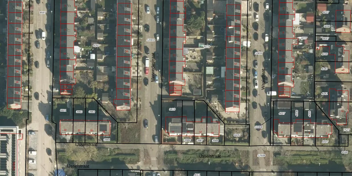 Het perceel waarop Merwedestraat 17-a staat heeft een oppervlakte van 3355 m². Dit is een zeer groot perceel. De perceeloppervlakte wordt geregistreerd door het Kadaster. Gedetailleerde informatie over de maten van dit perceel kunt u vinden in het rapport Kadastrale kaart met maatvoering van Merwedestraat 17-a.