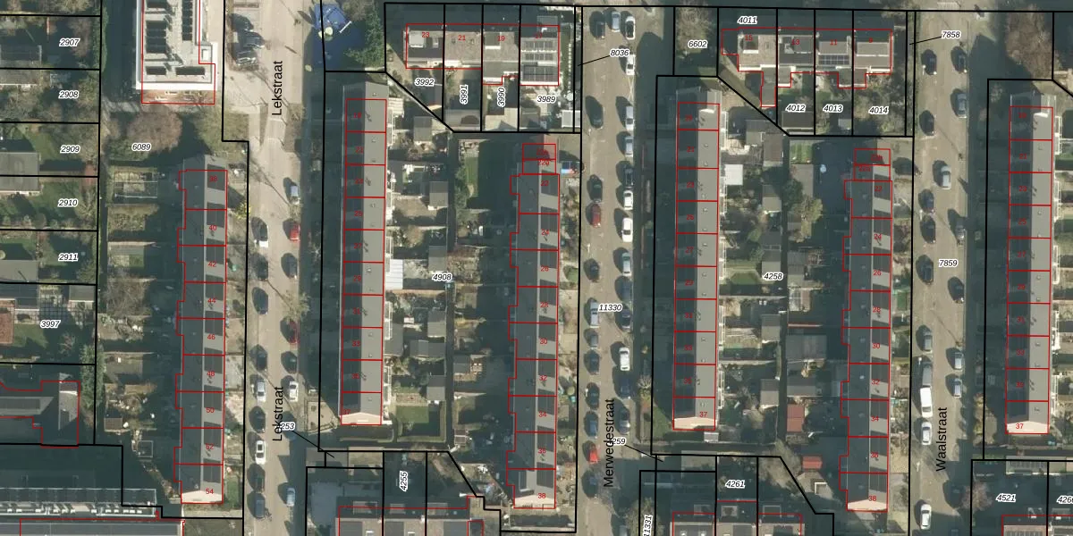Het perceel waarop Merwedestraat 26 staat heeft een oppervlakte van 3350 m². Dit is een zeer groot perceel. De perceeloppervlakte wordt geregistreerd door het Kadaster. Gedetailleerde informatie over de maten van dit perceel kunt u vinden in het rapport Kadastrale kaart met maatvoering van Merwedestraat 26.