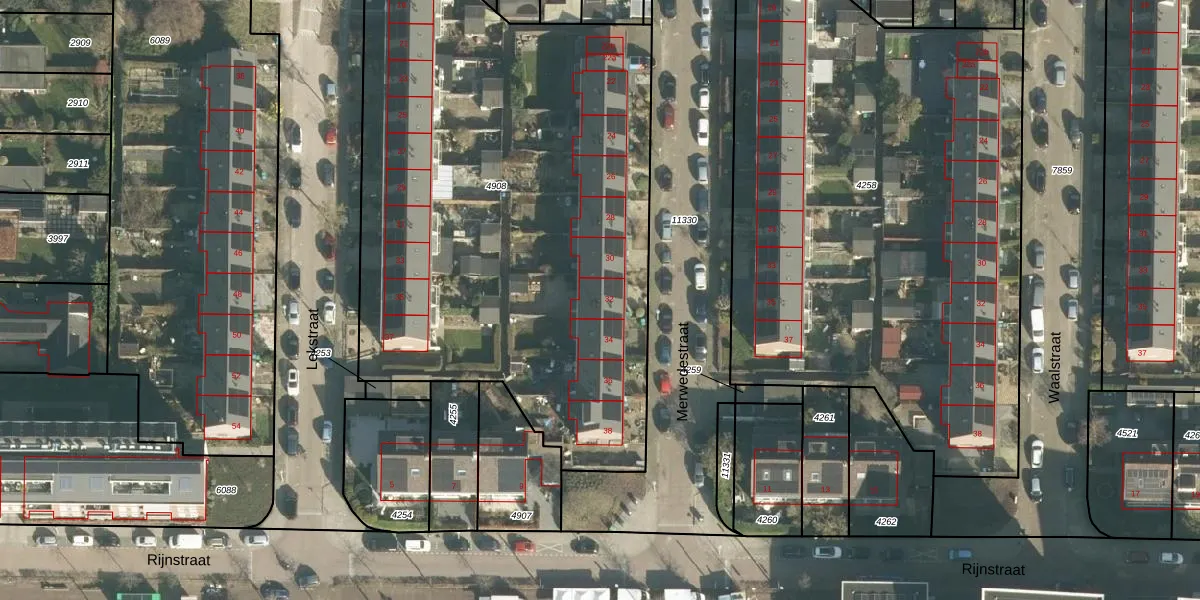 Het perceel waarop Merwedestraat 32 staat heeft een oppervlakte van 3350 m². Dit is een zeer groot perceel. De perceeloppervlakte wordt geregistreerd door het Kadaster. Gedetailleerde informatie over de maten van dit perceel kunt u vinden in het rapport Kadastrale kaart met maatvoering van Merwedestraat 32.