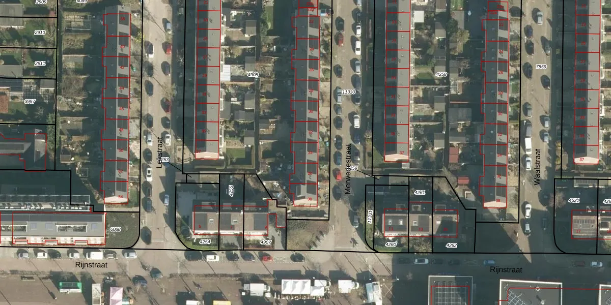 Het perceel waarop Merwedestraat 34 staat heeft een oppervlakte van 3350 m². Dit is een zeer groot perceel. De perceeloppervlakte wordt geregistreerd door het Kadaster. Gedetailleerde informatie over de maten van dit perceel kunt u vinden in het rapport Kadastrale kaart met maatvoering van Merwedestraat 34.