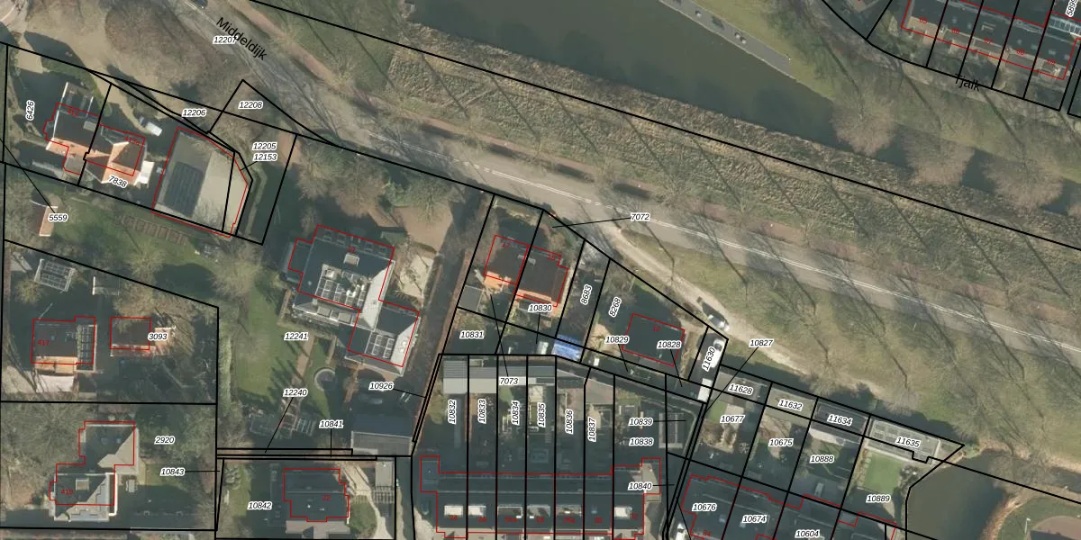 Het perceel waarop Middeldijk 15 staat heeft een oppervlakte van 191 m². Dit is een middelgroot perceel. De perceeloppervlakte wordt geregistreerd door het Kadaster. Gedetailleerde informatie over de maten van dit perceel kunt u vinden in het rapport Kadastrale kaart met maatvoering van Middeldijk 15.