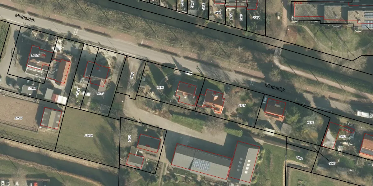 Het perceel waarop Middeldijk 27 staat heeft een oppervlakte van 626 m². Dit is een groot perceel. De perceeloppervlakte wordt geregistreerd door het Kadaster. Gedetailleerde informatie over de maten van dit perceel kunt u vinden in het rapport Kadastrale kaart met maatvoering van Middeldijk 27.