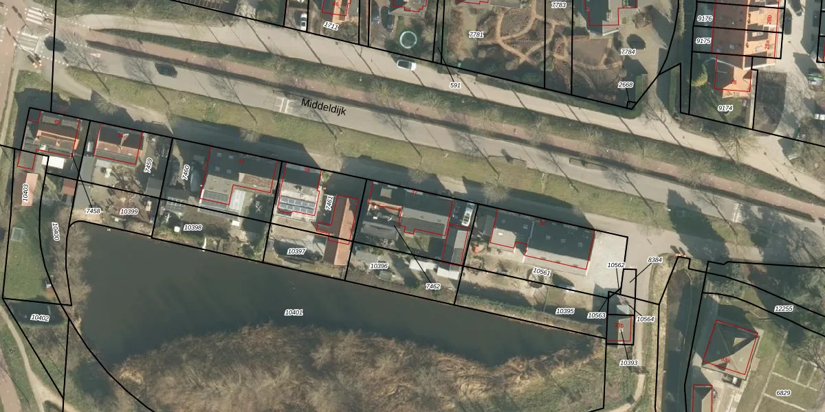 Middeldijk 37 is gelegen op kadastraal perceel BRD00D7462. Deze kadastrale aanduiding is uniek en wordt gebruikt door het Kadaster om eigendomsrechten en andere zakelijke rechten vast te leggen. Het perceel maakt onderdeel uit van de kadastrale gemeente Barendrecht.