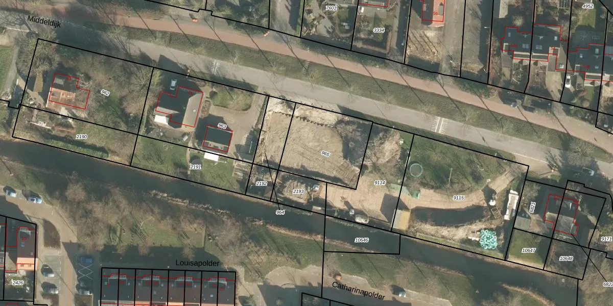 Het perceel waarop Middeldijk 57 staat heeft een oppervlakte van 605 m². Dit is een groot perceel. De perceeloppervlakte wordt geregistreerd door het Kadaster. Gedetailleerde informatie over de maten van dit perceel kunt u vinden in het rapport Kadastrale kaart met maatvoering van Middeldijk 57.