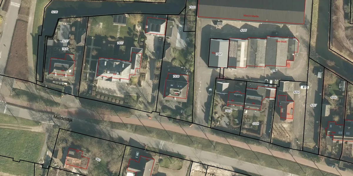Middeldijk 62 is gelegen op kadastraal perceel BRD00B7838. Deze kadastrale aanduiding is uniek en wordt gebruikt door het Kadaster om eigendomsrechten en andere zakelijke rechten vast te leggen. Het perceel maakt onderdeel uit van de kadastrale gemeente Barendrecht.