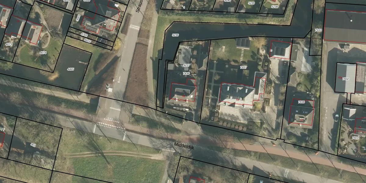 Het perceel waarop Middeldijk 66 staat heeft een oppervlakte van 860 m². Dit is een groot perceel. De perceeloppervlakte wordt geregistreerd door het Kadaster. Gedetailleerde informatie over de maten van dit perceel kunt u vinden in het rapport Kadastrale kaart met maatvoering van Middeldijk 66.