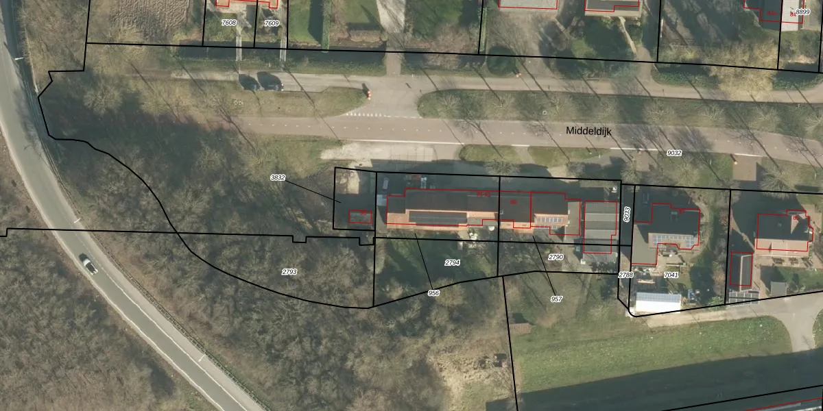 Middeldijk 93 is gelegen op kadastraal perceel BRD00C956. Deze kadastrale aanduiding is uniek en wordt gebruikt door het Kadaster om eigendomsrechten en andere zakelijke rechten vast te leggen. Het perceel maakt onderdeel uit van de kadastrale gemeente Barendrecht.