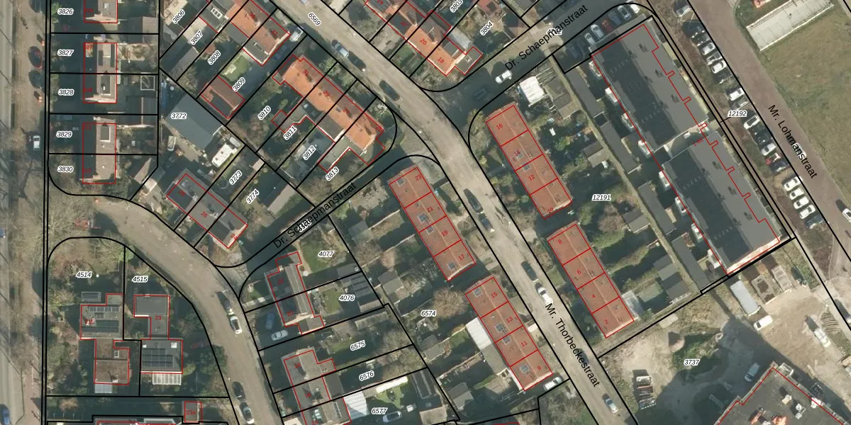 Het perceel waarop Mr. Thorbeckestraat 21 staat heeft een oppervlakte van 1761 m². Dit is een zeer groot perceel. De perceeloppervlakte wordt geregistreerd door het Kadaster. Gedetailleerde informatie over de maten van dit perceel kunt u vinden in het rapport Kadastrale kaart met maatvoering van Mr. Thorbeckestraat 21.
