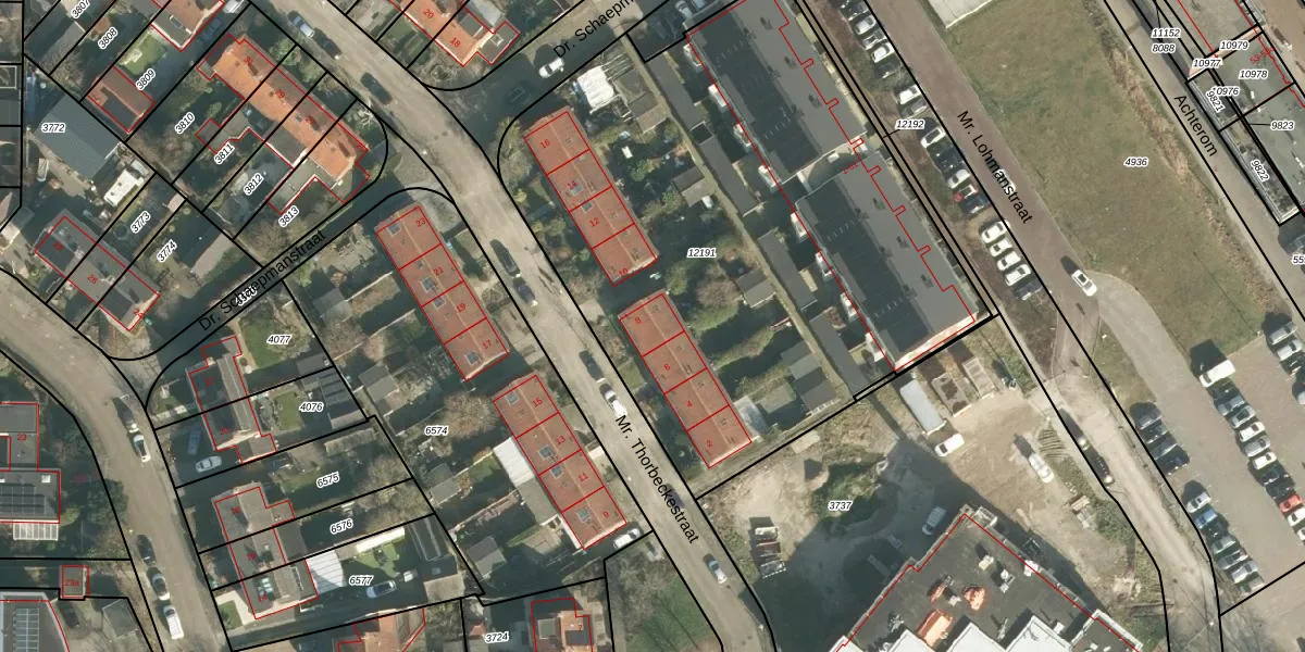 Het perceel waarop Mr. Thorbeckestraat 8 staat heeft een oppervlakte van 3370 m². Dit is een zeer groot perceel. De perceeloppervlakte wordt geregistreerd door het Kadaster. Gedetailleerde informatie over de maten van dit perceel kunt u vinden in het rapport Kadastrale kaart met maatvoering van Mr. Thorbeckestraat 8.