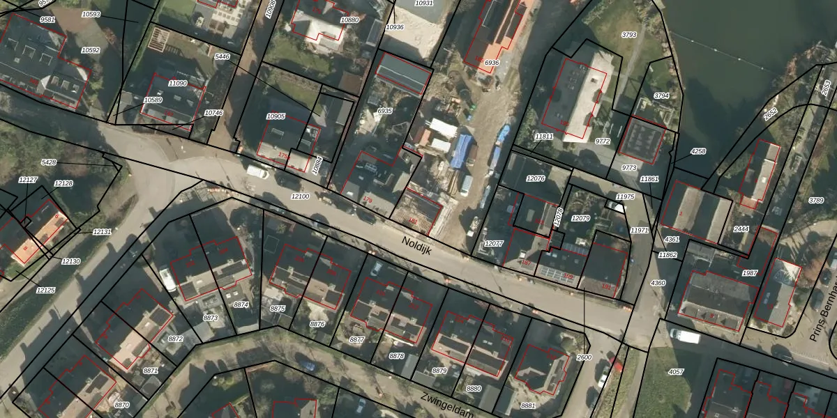 Het perceel waarop Noldijk 181 staat heeft een oppervlakte van 1835 m². Dit is een zeer groot perceel. De perceeloppervlakte wordt geregistreerd door het Kadaster. Gedetailleerde informatie over de maten van dit perceel kunt u vinden in het rapport Kadastrale kaart met maatvoering van Noldijk 181.