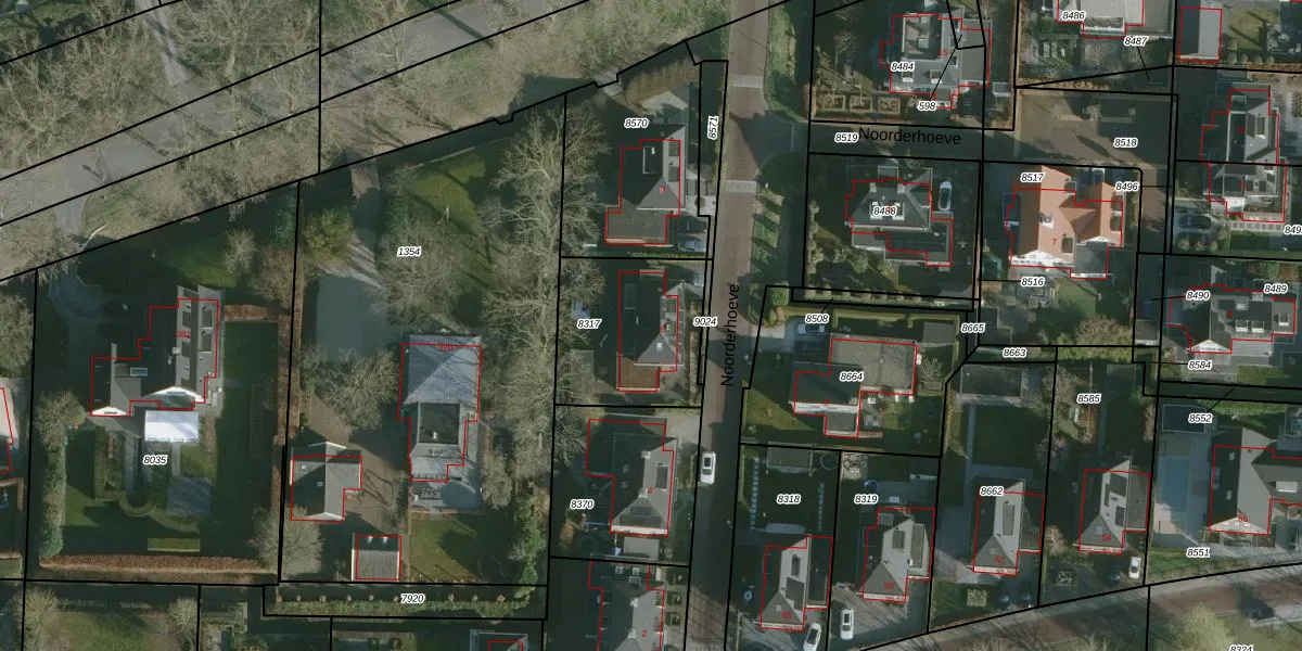 Het perceel waarop Noorderhoeve 6 staat heeft een oppervlakte van 507 m². Dit is een groot perceel. De perceeloppervlakte wordt geregistreerd door het Kadaster. Gedetailleerde informatie over de maten van dit perceel kunt u vinden in het rapport Kadastrale kaart met maatvoering van Noorderhoeve 6.