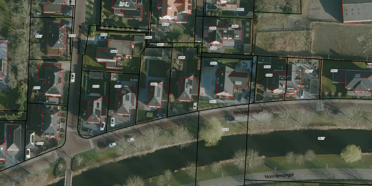 Het perceel waarop Noordersingel 54 staat heeft een oppervlakte van 594 m². Dit is een groot perceel. De perceeloppervlakte wordt geregistreerd door het Kadaster. Gedetailleerde informatie over de maten van dit perceel kunt u vinden in het rapport Kadastrale kaart met maatvoering van Noordersingel 54.