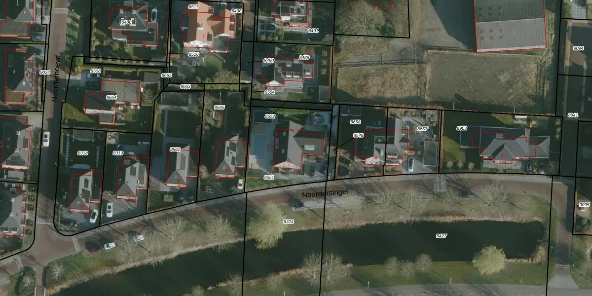 Het perceel waarop Noordersingel 56 staat heeft een oppervlakte van 730 m². Dit is een groot perceel. De perceeloppervlakte wordt geregistreerd door het Kadaster. Gedetailleerde informatie over de maten van dit perceel kunt u vinden in het rapport Kadastrale kaart met maatvoering van Noordersingel 56.