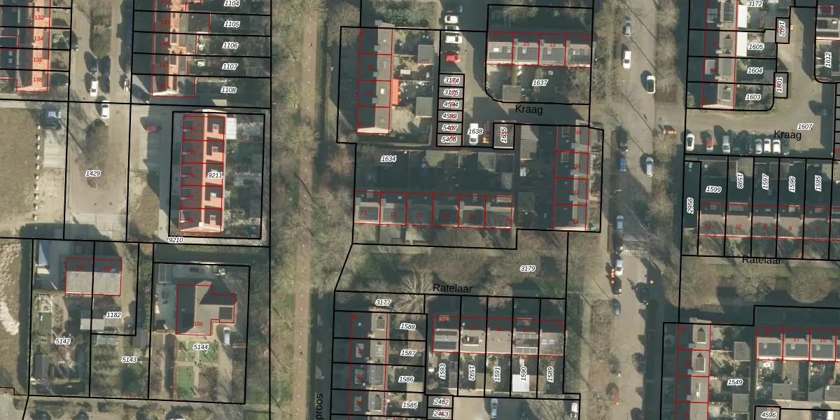 Het perceel waarop Ratelaar 20 staat heeft een oppervlakte van 2095 m². Dit is een zeer groot perceel. De perceeloppervlakte wordt geregistreerd door het Kadaster. Gedetailleerde informatie over de maten van dit perceel kunt u vinden in het rapport Kadastrale kaart met maatvoering van Ratelaar 20.