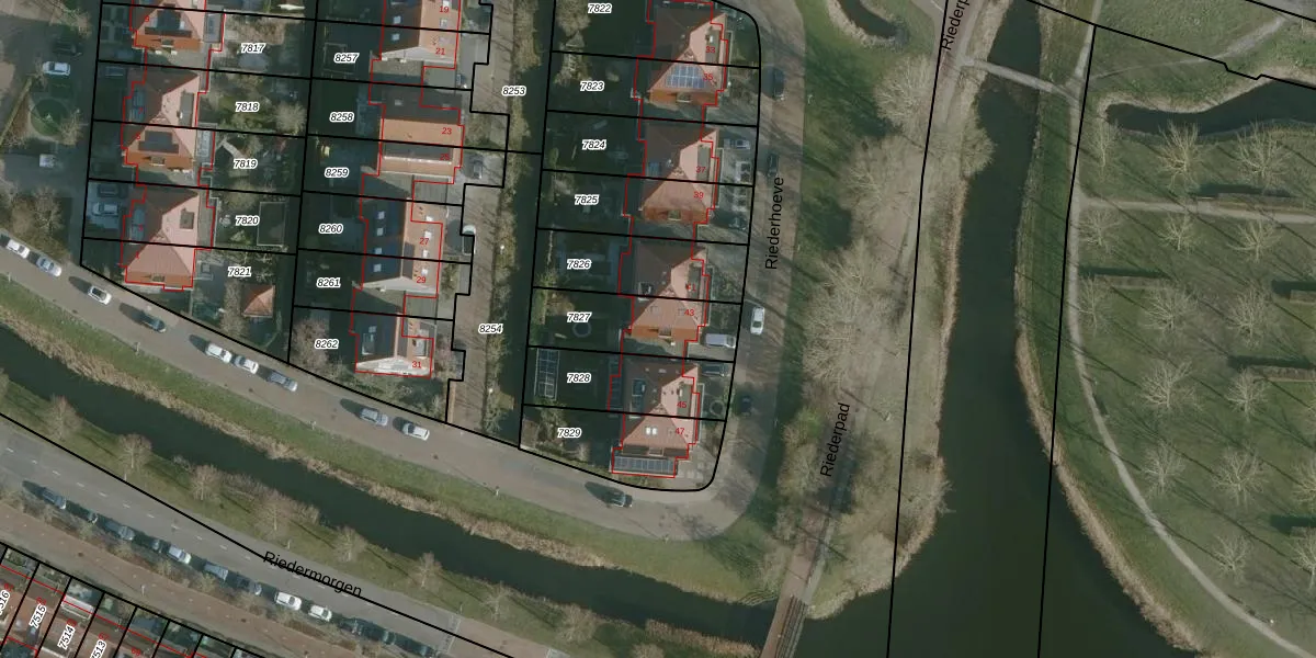 Het perceel waarop Riederhoeve 43 staat heeft een oppervlakte van 285 m². Dit is een middelgroot perceel. De perceeloppervlakte wordt geregistreerd door het Kadaster. Gedetailleerde informatie over de maten van dit perceel kunt u vinden in het rapport Kadastrale kaart met maatvoering van Riederhoeve 43.