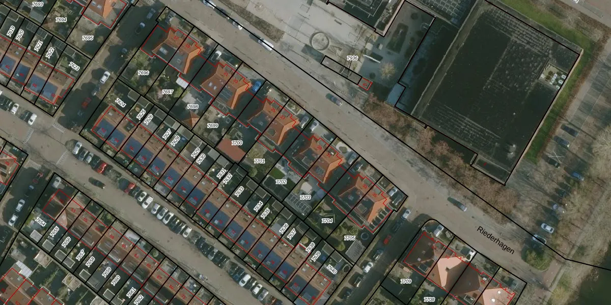 Het perceel waarop Riederhof 29 staat heeft een oppervlakte van 275 m². Dit is een middelgroot perceel. De perceeloppervlakte wordt geregistreerd door het Kadaster. Gedetailleerde informatie over de maten van dit perceel kunt u vinden in het rapport Kadastrale kaart met maatvoering van Riederhof 29.