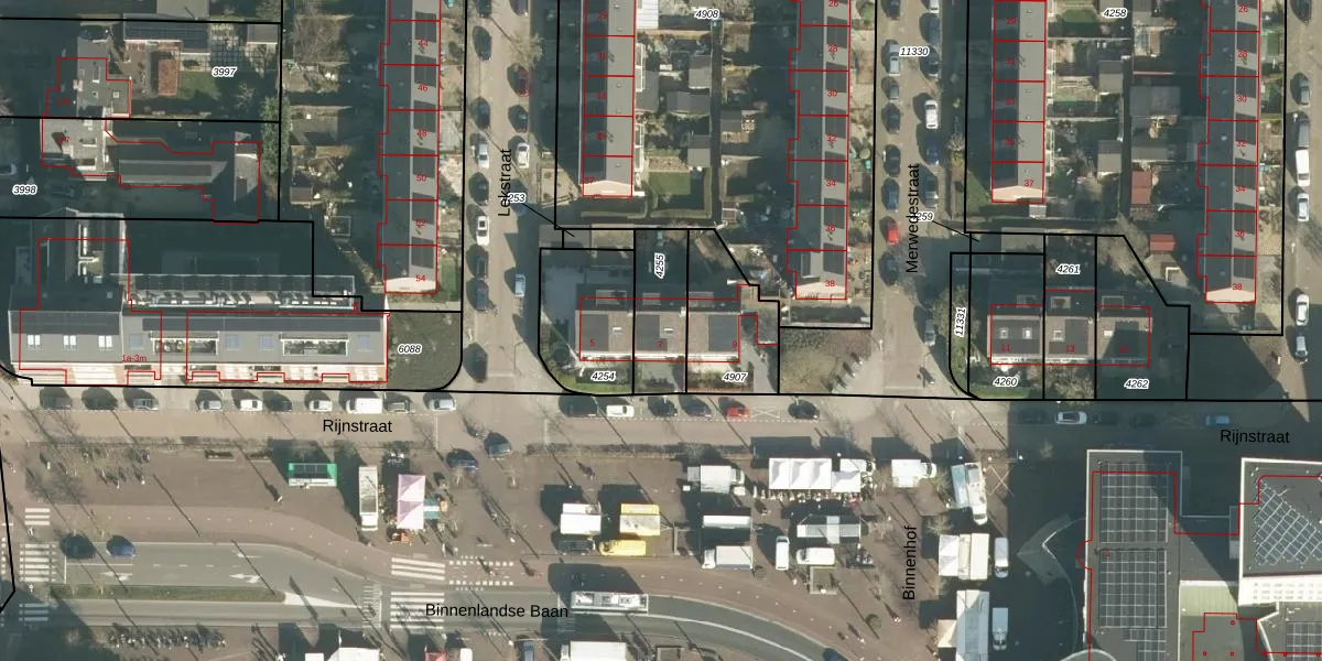Het perceel waarop Rijnstraat 7 staat heeft een oppervlakte van 197 m². Dit is een middelgroot perceel. De perceeloppervlakte wordt geregistreerd door het Kadaster. Gedetailleerde informatie over de maten van dit perceel kunt u vinden in het rapport Kadastrale kaart met maatvoering van Rijnstraat 7.