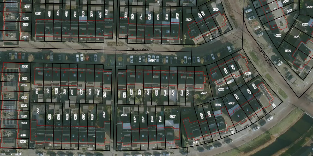 Het perceel waarop Rozenhout 20 staat heeft een oppervlakte van 136 m². Dit is een middelgroot perceel. De perceeloppervlakte wordt geregistreerd door het Kadaster. Gedetailleerde informatie over de maten van dit perceel kunt u vinden in het rapport Kadastrale kaart met maatvoering van Rozenhout 20.