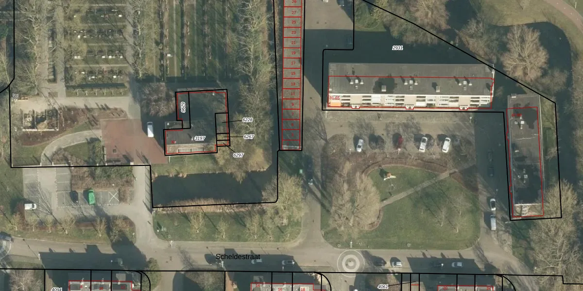 Het perceel waarop Scheldestraat 1 staat heeft een oppervlakte van 2989 m². Dit is een zeer groot perceel. De perceeloppervlakte wordt geregistreerd door het Kadaster. Gedetailleerde informatie over de maten van dit perceel kunt u vinden in het rapport Kadastrale kaart met maatvoering van Scheldestraat 1.