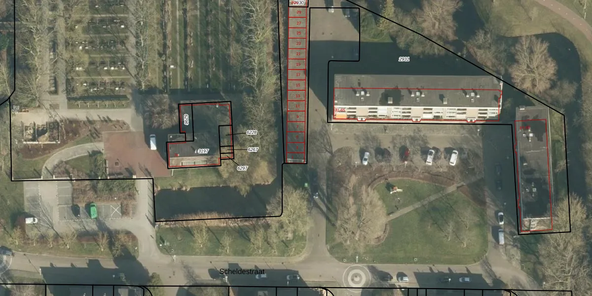 Het perceel waarop Scheldestraat 3 staat heeft een oppervlakte van 2989 m². Dit is een zeer groot perceel. De perceeloppervlakte wordt geregistreerd door het Kadaster. Gedetailleerde informatie over de maten van dit perceel kunt u vinden in het rapport Kadastrale kaart met maatvoering van Scheldestraat 3.