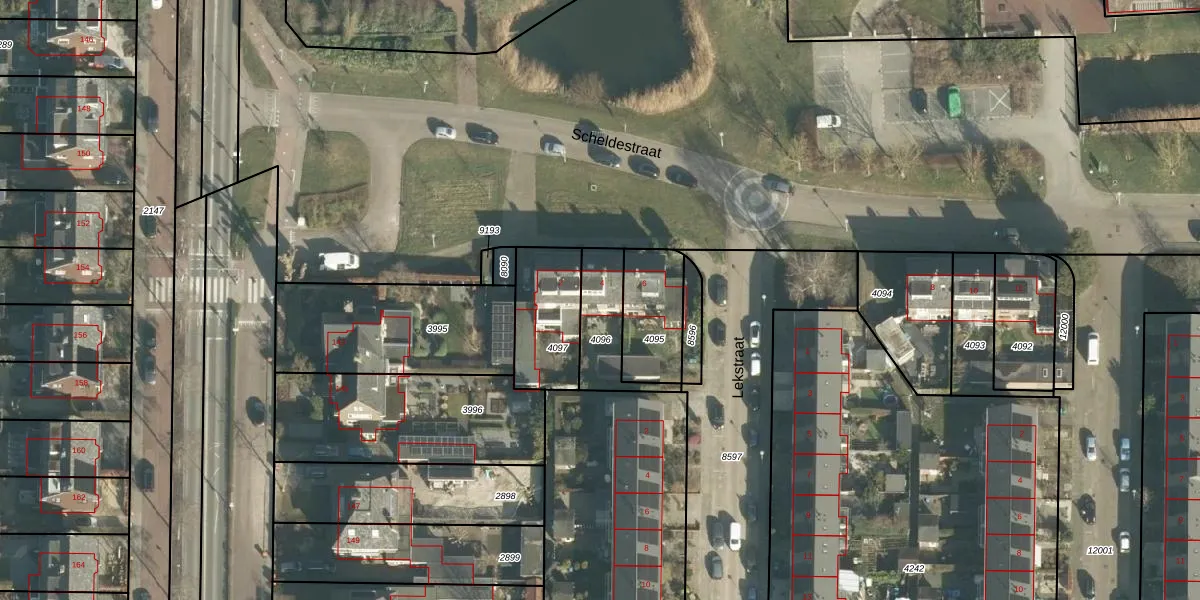 Het perceel waarop Scheldestraat 4 staat heeft een oppervlakte van 178 m². Dit is een middelgroot perceel. De perceeloppervlakte wordt geregistreerd door het Kadaster. Gedetailleerde informatie over de maten van dit perceel kunt u vinden in het rapport Kadastrale kaart met maatvoering van Scheldestraat 4.