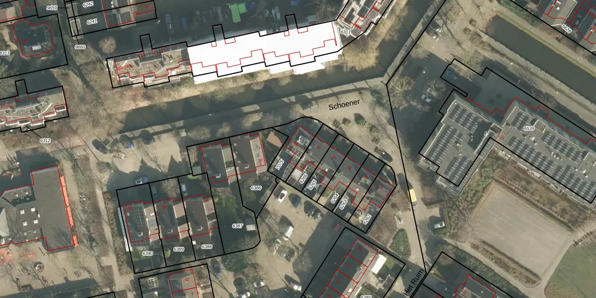 Het perceel waarop Schoener 28 staat heeft een oppervlakte van 188 m². Dit is een middelgroot perceel. De perceeloppervlakte wordt geregistreerd door het Kadaster. Gedetailleerde informatie over de maten van dit perceel kunt u vinden in het rapport Kadastrale kaart met maatvoering van Schoener 28.