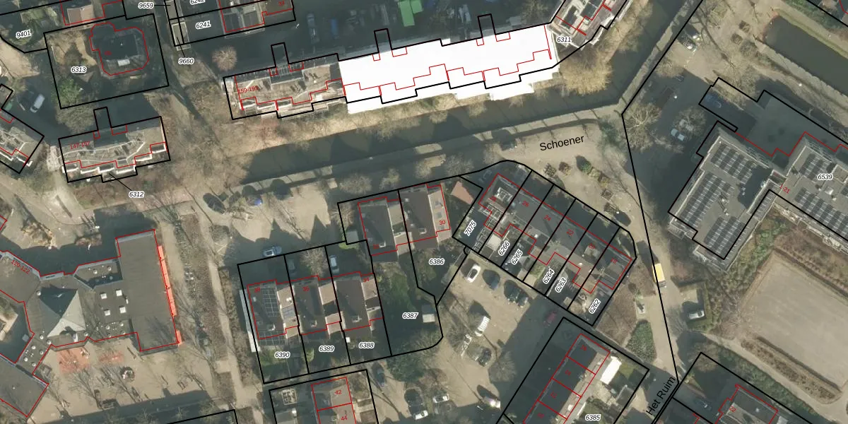 Schoener 30 is gelegen op kadastraal perceel BRD00D6386. Deze kadastrale aanduiding is uniek en wordt gebruikt door het Kadaster om eigendomsrechten en andere zakelijke rechten vast te leggen. Het perceel maakt onderdeel uit van de kadastrale gemeente Barendrecht.