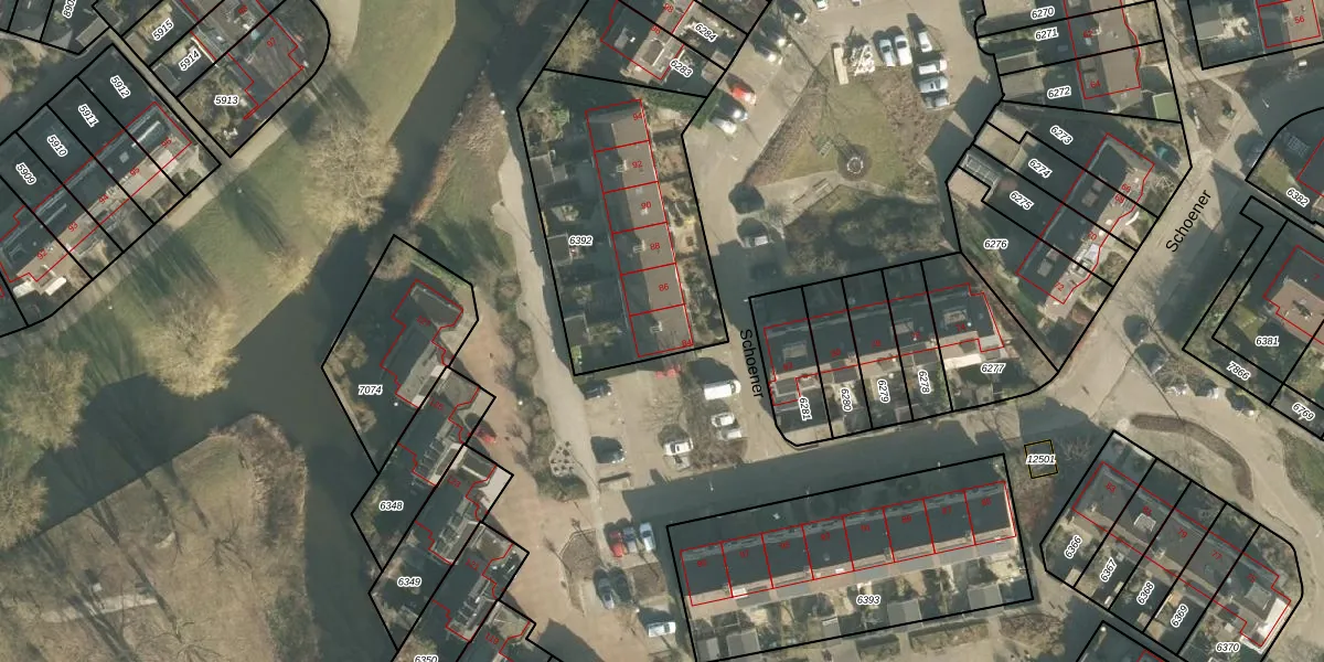 Het perceel waarop Schoener 84 staat heeft een oppervlakte van 1014 m². Dit is een zeer groot perceel. De perceeloppervlakte wordt geregistreerd door het Kadaster. Gedetailleerde informatie over de maten van dit perceel kunt u vinden in het rapport Kadastrale kaart met maatvoering van Schoener 84.