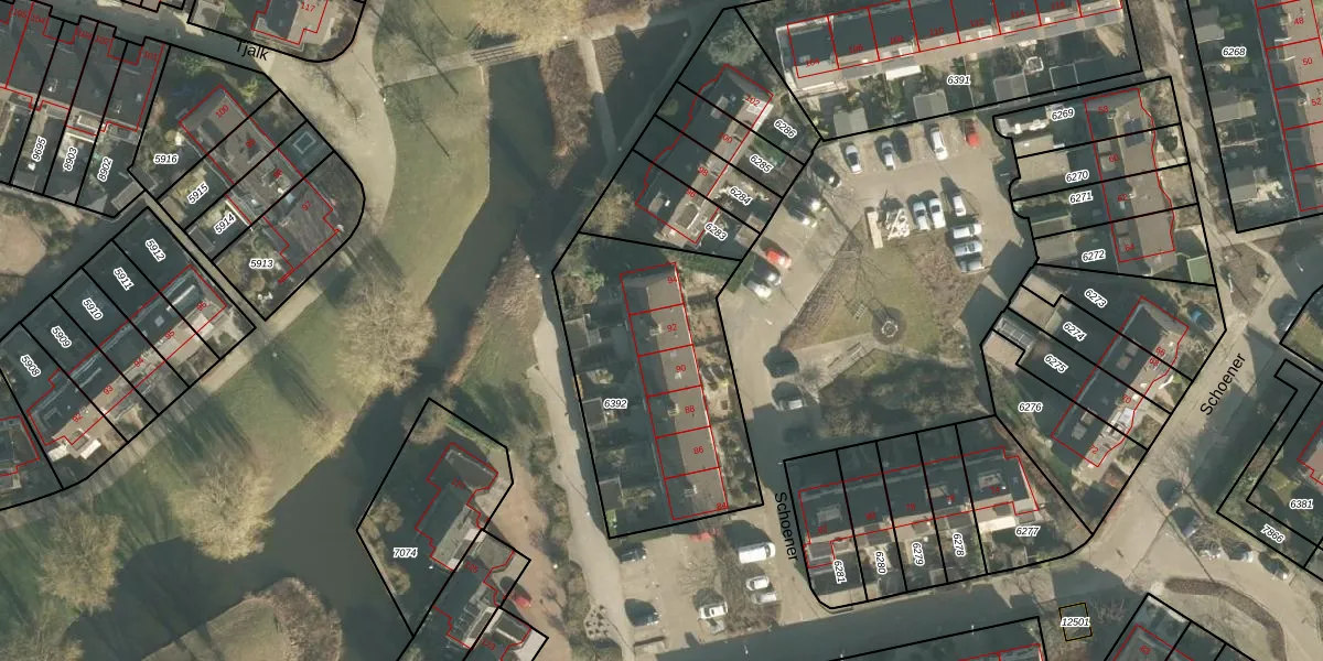 Het perceel waarop Schoener 92 staat heeft een oppervlakte van 1014 m². Dit is een zeer groot perceel. De perceeloppervlakte wordt geregistreerd door het Kadaster. Gedetailleerde informatie over de maten van dit perceel kunt u vinden in het rapport Kadastrale kaart met maatvoering van Schoener 92.