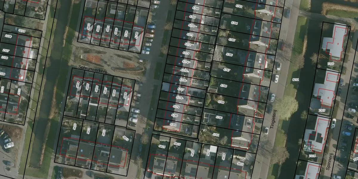 Schrijnwerkerij 13 is gelegen op kadastraal perceel BRD00B5777. Deze kadastrale aanduiding is uniek en wordt gebruikt door het Kadaster om eigendomsrechten en andere zakelijke rechten vast te leggen. Het perceel maakt onderdeel uit van de kadastrale gemeente Barendrecht.