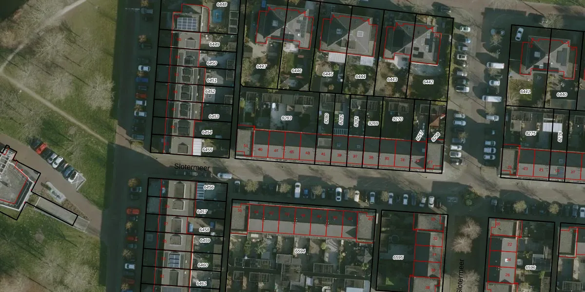 Het perceel waarop Slotermeer 45 staat heeft een oppervlakte van 676 m². Dit is een groot perceel. De perceeloppervlakte wordt geregistreerd door het Kadaster. Gedetailleerde informatie over de maten van dit perceel kunt u vinden in het rapport Kadastrale kaart met maatvoering van Slotermeer 45.