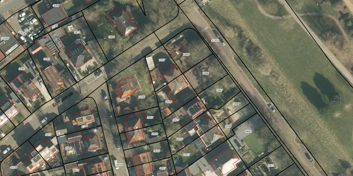 Gebruik de zoekbalk of klik op een perceel voor informatie over de adressen binnen dit perceel.