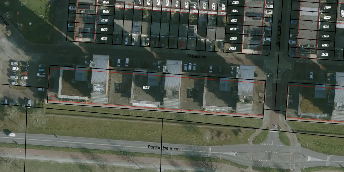Het perceel waarop Steekkant 165 staat heeft een oppervlakte van 2768 m². Dit is een zeer groot perceel. De perceeloppervlakte wordt geregistreerd door het Kadaster. Gedetailleerde informatie over de maten van dit perceel kunt u vinden in het rapport Kadastrale kaart met maatvoering van Steekkant 165.