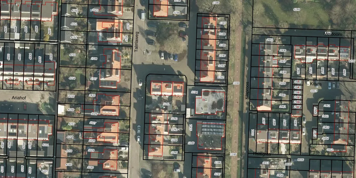 Het perceel waarop Talmaweg 33 staat heeft een oppervlakte van 500 m². Dit is een groot perceel. De perceeloppervlakte wordt geregistreerd door het Kadaster. Gedetailleerde informatie over de maten van dit perceel kunt u vinden in het rapport Kadastrale kaart met maatvoering van Talmaweg 33.
