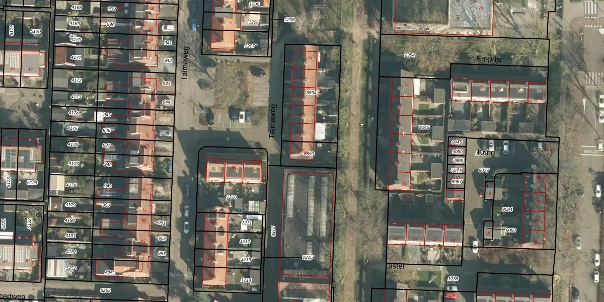 Gebruik de zoekbalk of klik op een perceel voor informatie over de adressen binnen dit perceel.