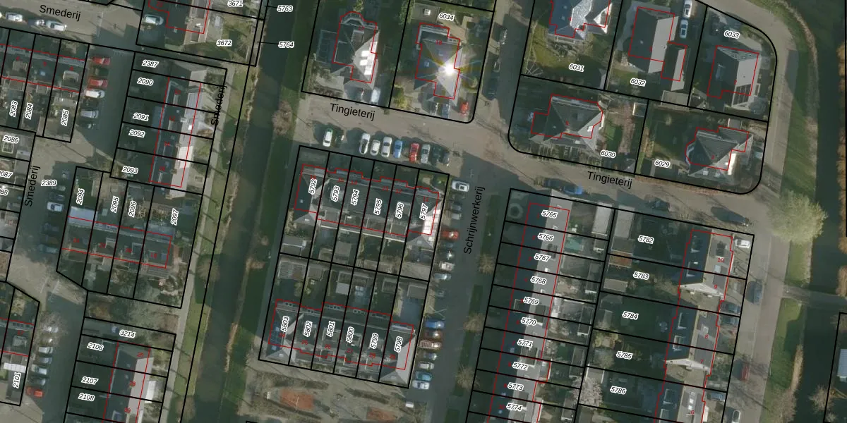 Het perceel waarop Tingieterij 11 staat heeft een oppervlakte van 184 m². Dit is een middelgroot perceel. De perceeloppervlakte wordt geregistreerd door het Kadaster. Gedetailleerde informatie over de maten van dit perceel kunt u vinden in het rapport Kadastrale kaart met maatvoering van Tingieterij 11.