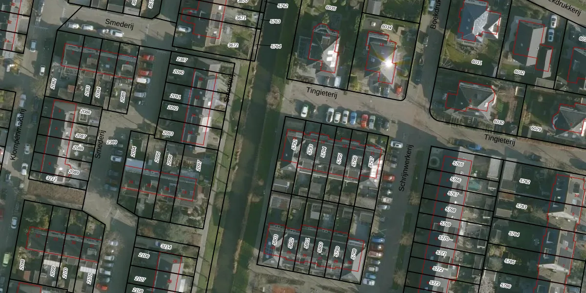 Het perceel waarop Tingieterij 16 staat heeft een oppervlakte van 184 m². Dit is een middelgroot perceel. De perceeloppervlakte wordt geregistreerd door het Kadaster. Gedetailleerde informatie over de maten van dit perceel kunt u vinden in het rapport Kadastrale kaart met maatvoering van Tingieterij 16.