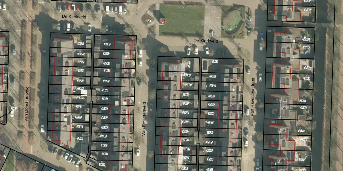 Van Eesterenveld 22 is gelegen op kadastraal perceel BRD00A3455. Deze kadastrale aanduiding is uniek en wordt gebruikt door het Kadaster om eigendomsrechten en andere zakelijke rechten vast te leggen. Het perceel maakt onderdeel uit van de kadastrale gemeente Barendrecht.