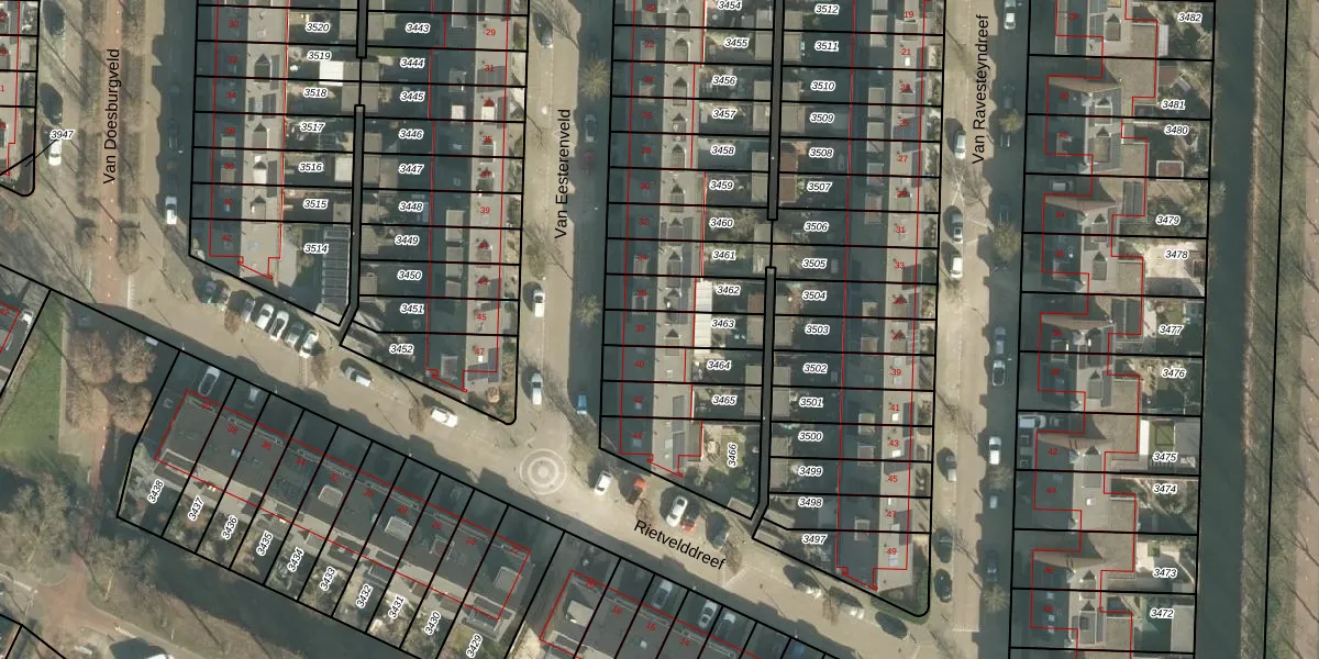 Het perceel waarop Van Eesterenveld 38 staat heeft een oppervlakte van 131 m². Dit is een middelgroot perceel. De perceeloppervlakte wordt geregistreerd door het Kadaster. Gedetailleerde informatie over de maten van dit perceel kunt u vinden in het rapport Kadastrale kaart met maatvoering van Van Eesterenveld 38.