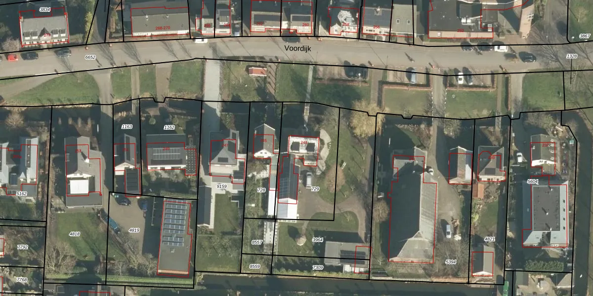 Het perceel waarop Voordijk 243 staat heeft een oppervlakte van 790 m². Dit is een groot perceel. De perceeloppervlakte wordt geregistreerd door het Kadaster. Gedetailleerde informatie over de maten van dit perceel kunt u vinden in het rapport Kadastrale kaart met maatvoering van Voordijk 243.
